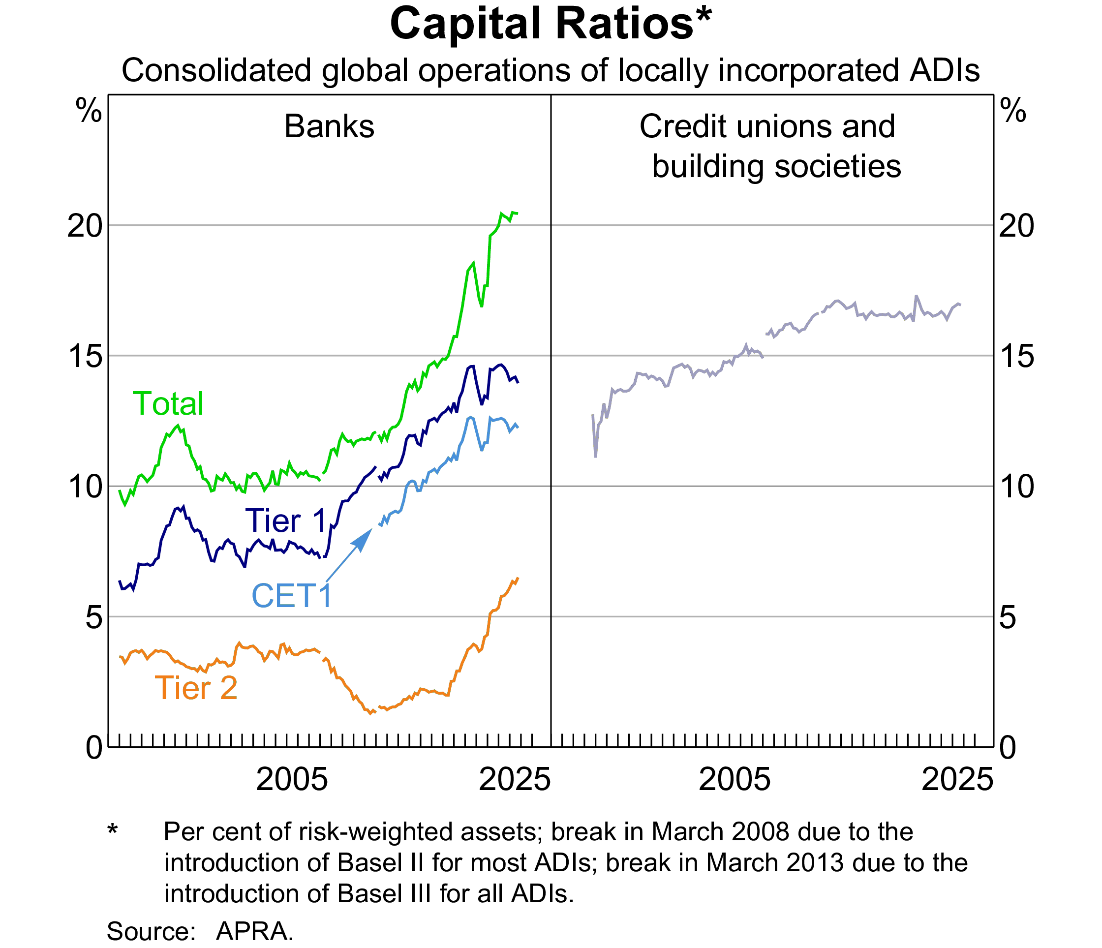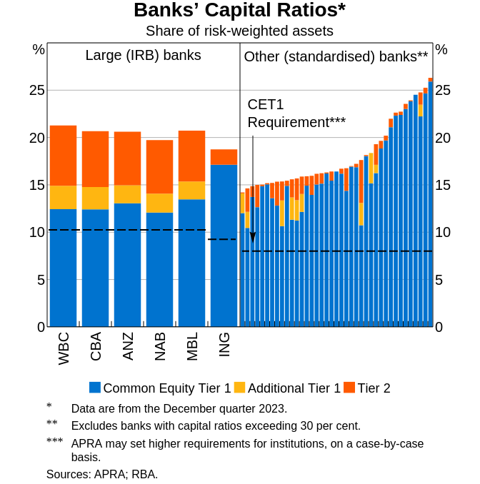 Figure 1 and Figure 2 show the capital ratios of Australian banks.