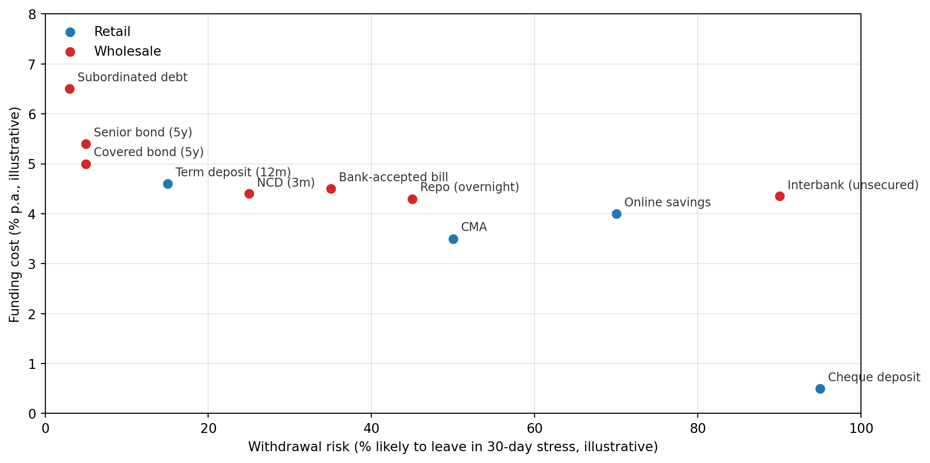 For the bank, term deposits are the workhorse of long, sticky retail funding. The cost is a known number locked in for the term.